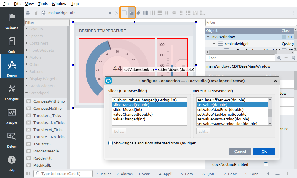 Create connections between widgets within the HMI using Signal-and-Slots.