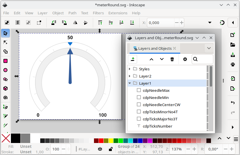 These designs are exported from Figma as SVG files, with named elements like needles and scales that the widgets recognize. By combining these SVG parts with other base widgets, designers can build rich, data-driven instruments that remain fully theme-aware.