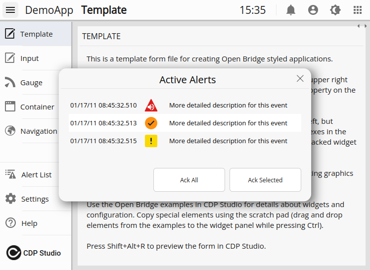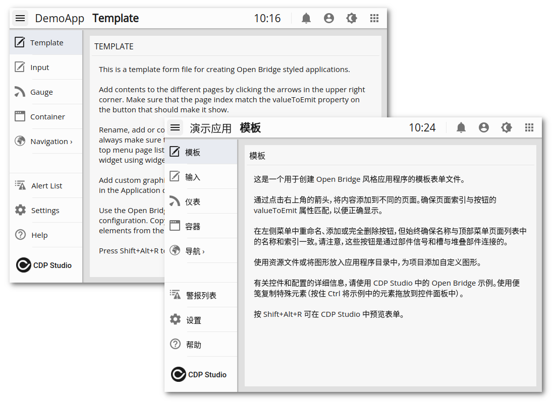 CDP Studio includes professionally designed themes for creating consistent, modern interfaces. Choose from light, dark, or Open Bridge styles, or customize your own to match project or brand requirements.