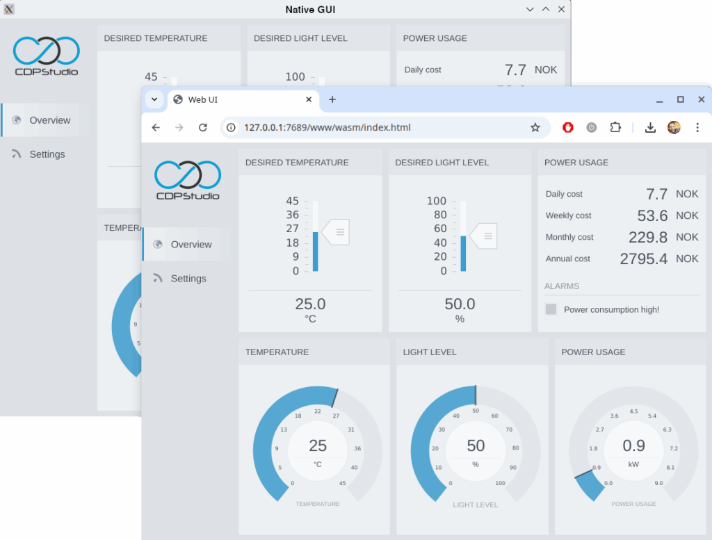 The same HMI project can run as a native desktop application, on embedded hardware, or in any modern web browser. Choose the platform that fits your system best — without redesign.
