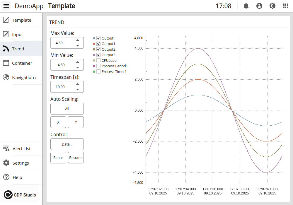 Visualize logged data directly in your HMI with the Database Graph widget. Connect to the CDP Logger to display trends over time, compare signals, and analyze system behavior. Historical and live values can be shown together, giving operators instant insight into both current status and long-term performance.