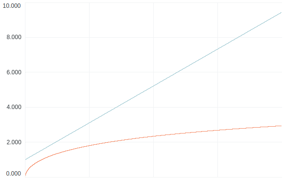 Below is an example plot with linearly increasing signal (cyan) and the same signal with ACosHOperator() applied (orange):