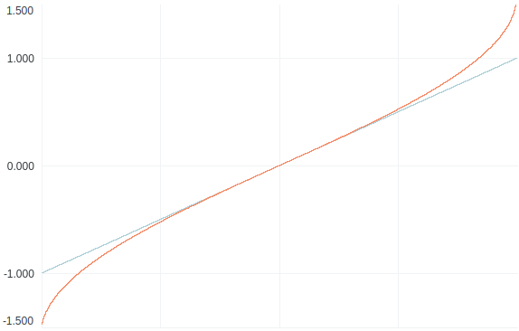 Below is an example plot with linearly increasing signal (cyan) and the same signal with ASinOperator() applied (orange):