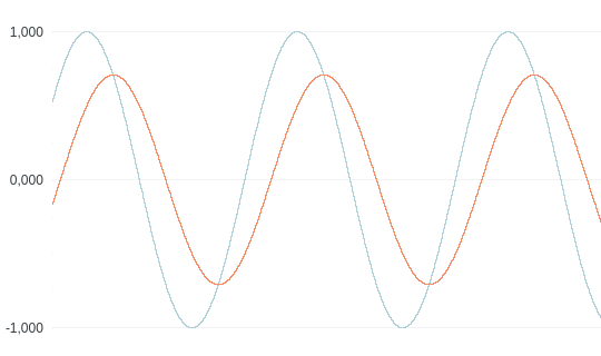 Below is an example plot of 1Hz Sine signal (cyan) and the same signal with IIRFilter operator with property f3dB=1 applied (orange):