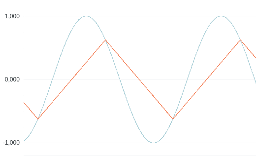 Below is an example plot of 1 Hz Sine signal (cyan) and the same signal with RampFilter operator with property MaxRate=2.5 applied(orange):