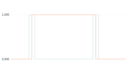 Below is example plot with input boolean signal (cyan) with ToggleOperator(Edge=RisingEdge) applied (orange).