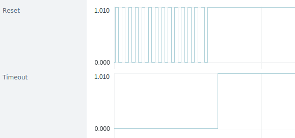 Below is an example plot with Reset input becoming inactive and Timeout going high in response to the inactivity.