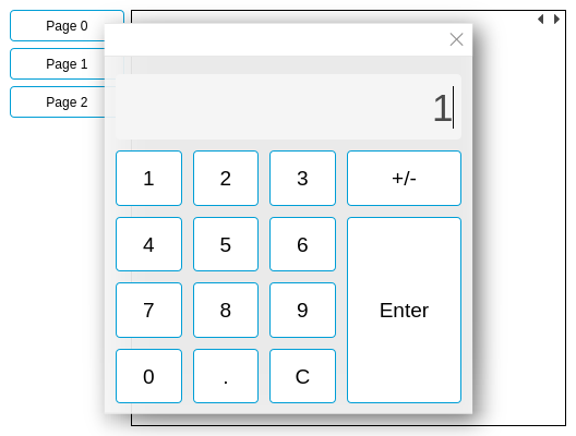 The Popup Dialog Button also supports protecting pages by pin code. To make the second page protected by pin, all we have to do is edit the pinCode property of the button and replace the connection to the stacked widget with a connect from clickedPinProtected(int) to setCurrentIndex(int).