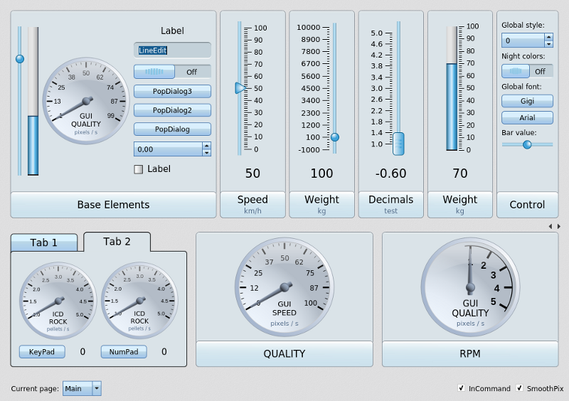 - Smooth Pixmap - This feature is used to make graphics look good during rotations and other transformations. Turning the feature off might increase performance on systems with limited resources. Note however, that without pixmap smoothing, animated graphics like needles will get pixelated.