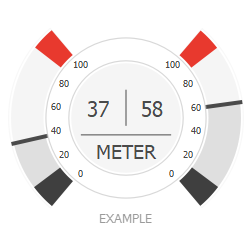 The Meter 2 Needles widget has 2 needles on one meter. It can either be used to show a 2nd value on the same scale or you can separate the needles and have two different scales.