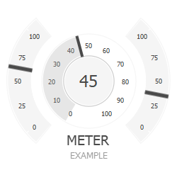 The Meter 3 Needles widget has three needles in one meter. It can either be used to show values on the same scale or you can separate the needles and have three different scales. More...