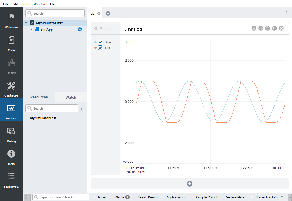 Now the StateVariable SimApp.MyIntegrator.Out is limited, so the values always stays within [-1..1].