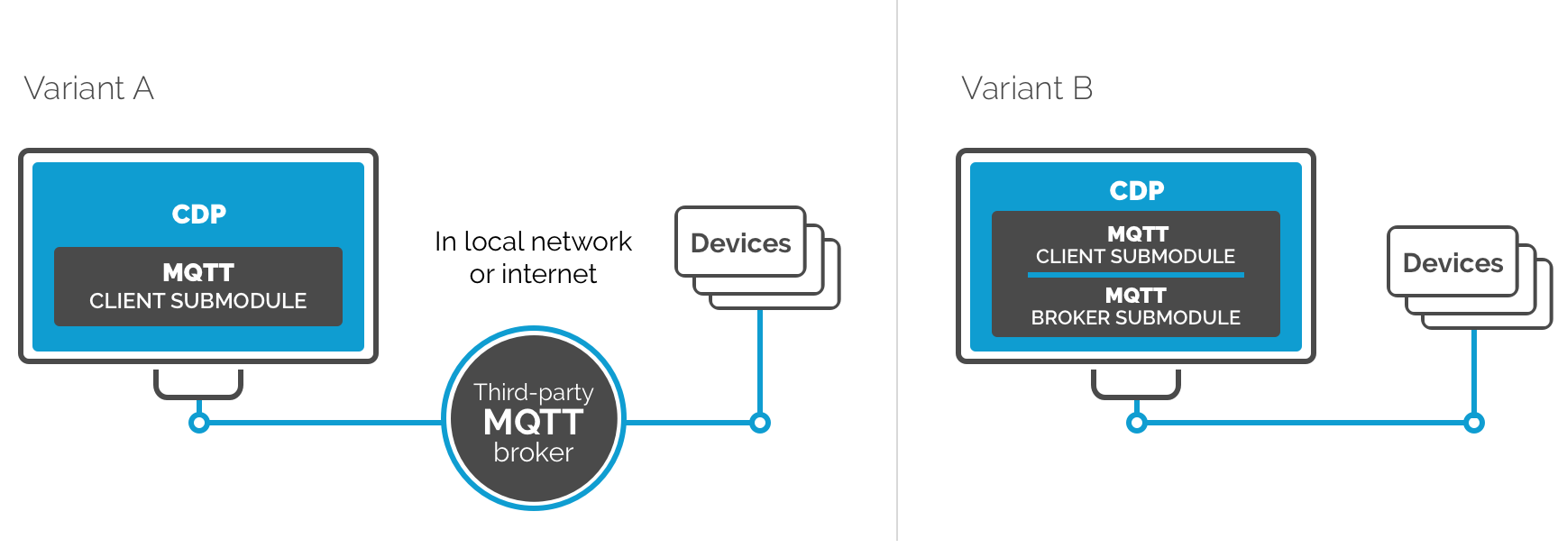 To use CDP built-in MQTT broker MQTTBroker subcomponent must be added to CDP application.