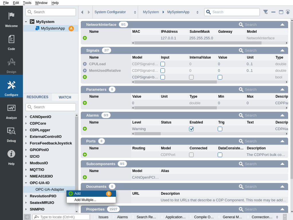- Choose a OPC-UA-Adapter from Resource tree, right-click on it and choose Add