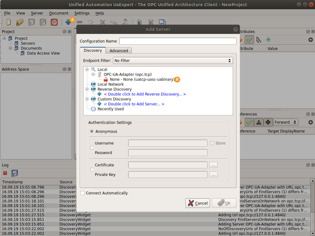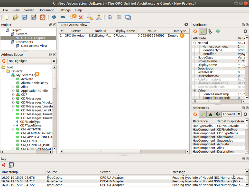 You can now connect to the running CDP system via any OPC UA client, e.g. UaExpert.