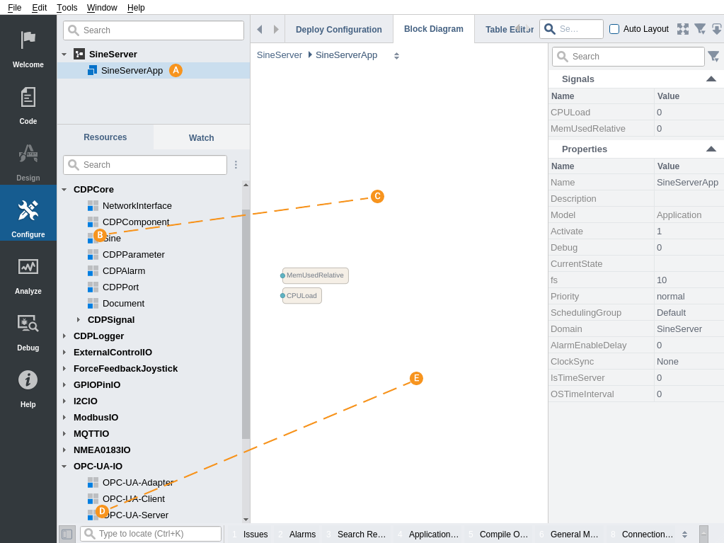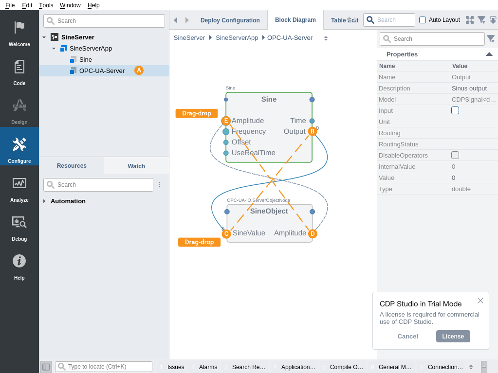 - OPC UA server application that serves CDP sine component output and allows to set amplitude parameter via OPC UA.
