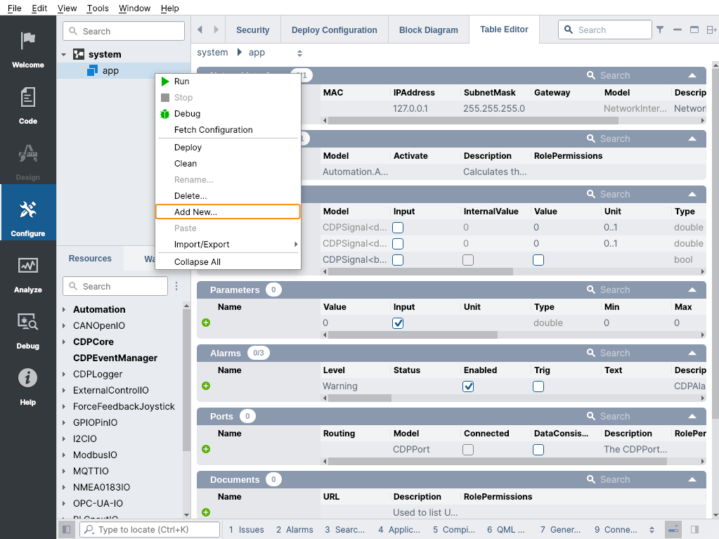 To add the Security Configurator to your application, right-click on it in the Project tree and select Add New....