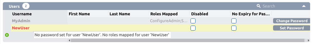 If there are any issues in the security configuration, the relevant line is displayed in red color and a more detailed error message is available in the tooltip.