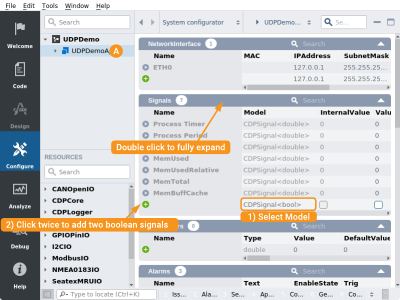 • Select CDPSignal<bool> for Model in Signals section table last row.