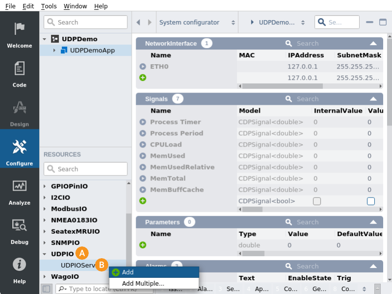 • Right-click and select Add on UDPIOServer to add it to UDPDemoApp.