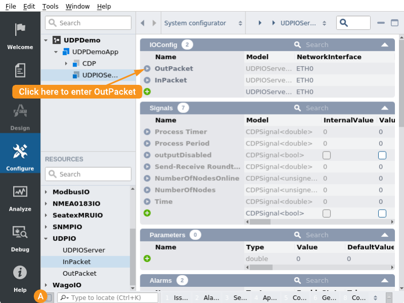 • From the Resource tree, right-click and select Add on OutPacket to add it to the IOConfig section in the UDPIOServer.