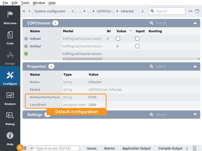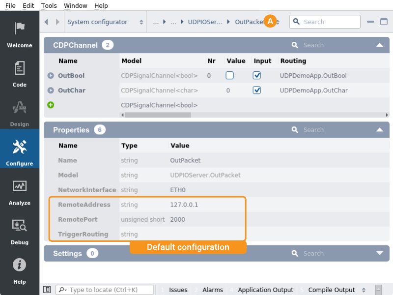 • In Signals section edit InChar signal's Routing to "UDPDemoApp.UDPIOServer.InPacket.InChar"
