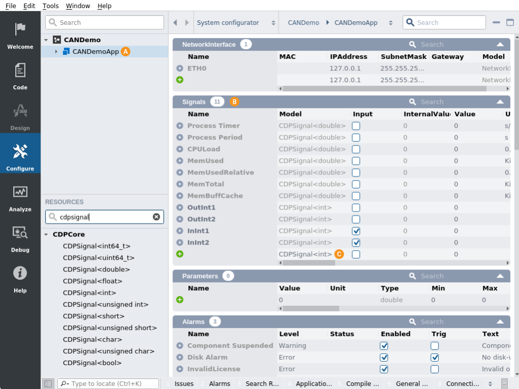 - Select the CANDemoApp that resides under CANDemo in the Project tree.